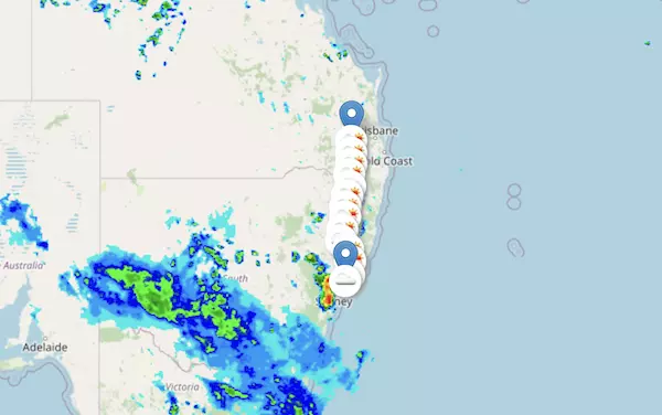 The A1 Pacific Highway starts at Brisbane, QLD, and ends at Sydney, NSW, and passes through Gold Coast, Byron Bay, and Newcastle.