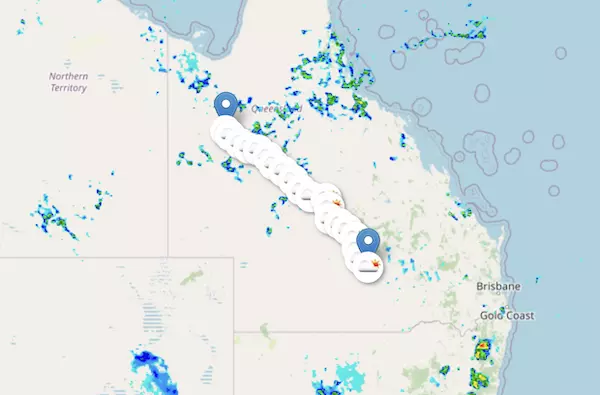 The A2 Landsborough Highway starts at Morven. QL, and ends at Cloncurry, QL, passing through Augathella, Barcaldine, Longreach, and Winton.