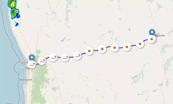 The National Route 94 Coolgardie-Esperance Highway starts at Perth, WA, and ends at Coolgardie, WA, passing through Norseman and Widgiemooltha.