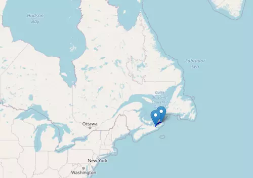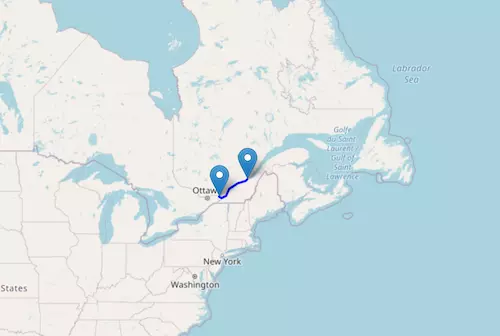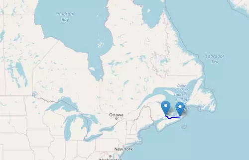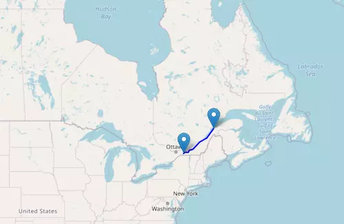 New Brunswick Route 2 reaches from Saint-Jacques Parish, New Brunswick, to Westmorland Parish, New Brunswick, passing through Woodstock, Fredericton, and Moncton.
