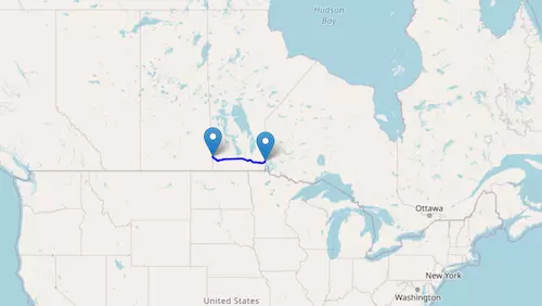 Manitoba Highway 1 reaches from the province of Saskatchewan to the province of Ontario, passing through Winnipeg.