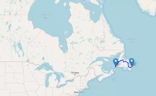 Newfoundland and Labrador Route 1 reaches from Channel-Port aux Basques in the west to St. John's in the east, passing through Deer Lake, Clarenville, and Whitbourne.
