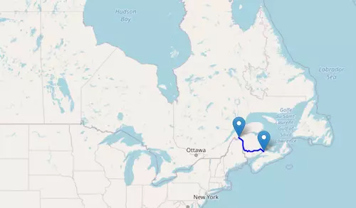Québec Autoroute 40 reaches from Pointe-Fortune, Québec, to Boischatel, Québec, passing through Montreal and Québec City.