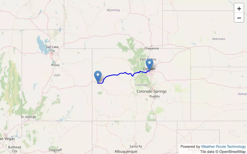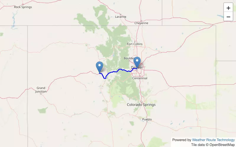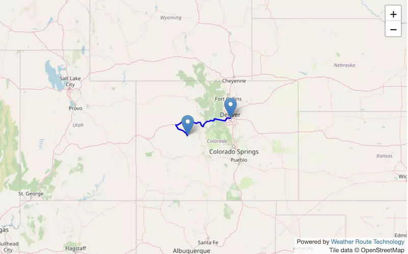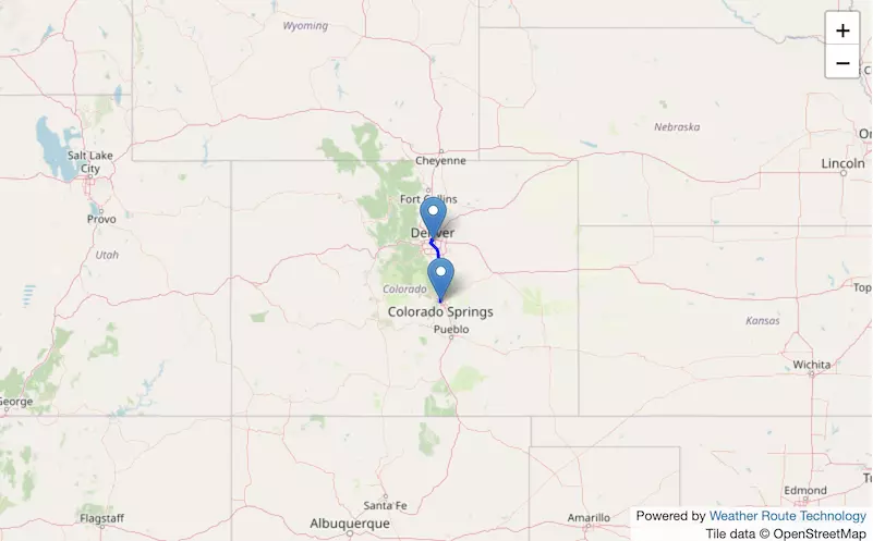 The route from Denver to Colorado Springs exists entirely in Colorado.