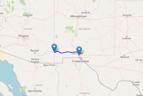 Interstate I-10 reaches from Roadforks, near the border of Arizona, to Anthony, near the border of Texas near El Paso.