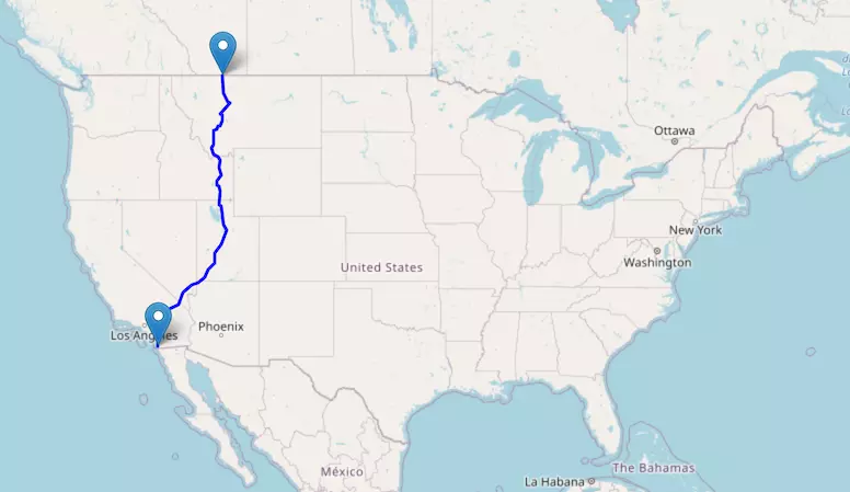 Interstate I-15 reaches from Canada to Mexico and passes through Montana, Idaho, Utah, Arizona, Nevada, and California.