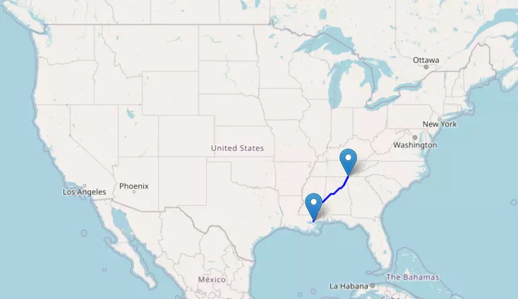 Interstate I-55 reaches from Illinois to Louisiana and passes through Missouri, Tennessee, Arkansas, and Mississippi.