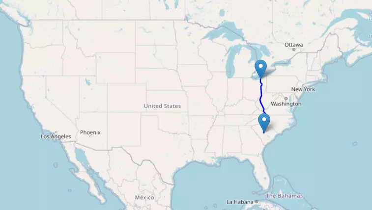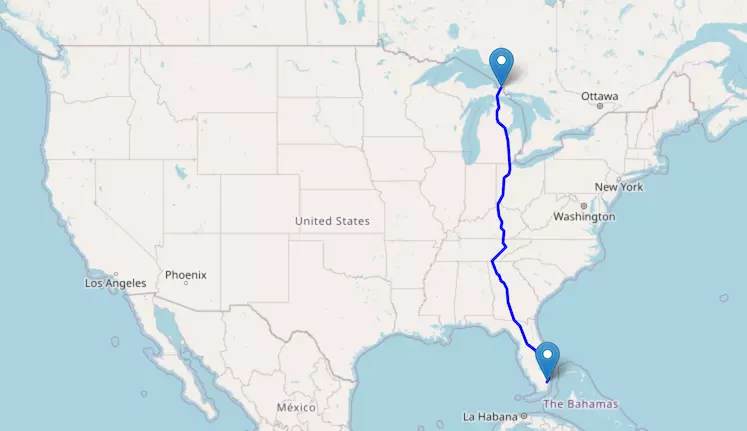 Interstate I-75 reaches from Canada to Florida and passes through Michigan, Ohio, Kentucky, Tennessee, and Georgia.