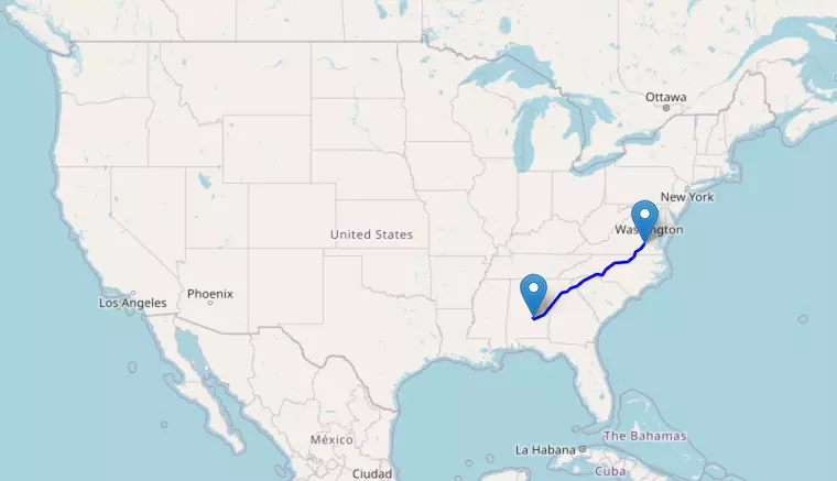 Interstate I-20 reaches from Texas to South Carolina and passes through Louisiana, Mississippi, Alabama, and Georgia.