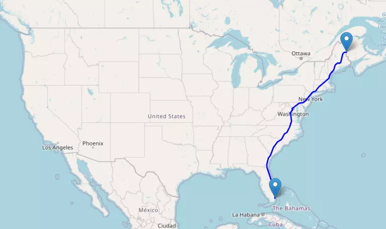 Interstate I-95 reaches from Canada to Florida and passes through Maine, New Hampshire, Massachusetts, Rhode Island, Connecticut, New York, New Jersey, Pennsylvania, Delaware, Maryland, Virginia, North Carolina, South Carolina, and Georgia.
