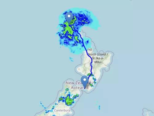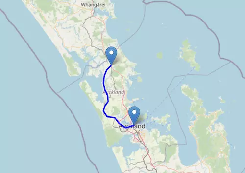 The SH 1 Northern Island Motorway starts at Cape Reinga and ends at Wellington, passing through Kaitaia, Whangārei, Warkworth, Silverdale, Auckland, Hamilton, Taupō, and Tūrangi.