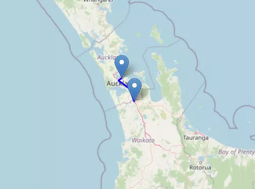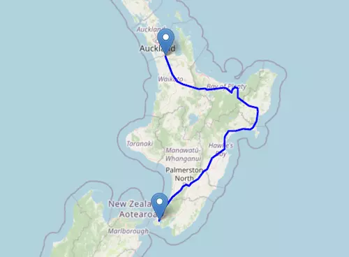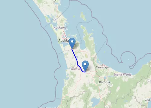 The SH 2 Motorway starts at Pōkeno and ends at Wellington, passing through Tauranga, Ōpōtiki, Gisborne, Napier, Hastings, and Masterton.