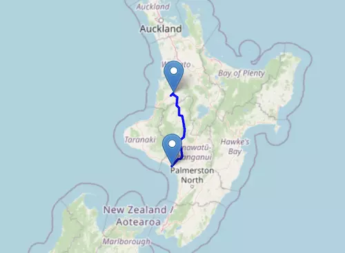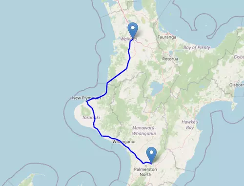 The SH 3 Motorway starts at Hamilton and ends at Aokautere, passing through New Plymouth, Hāwera, Whanganui, and Palmerston North.