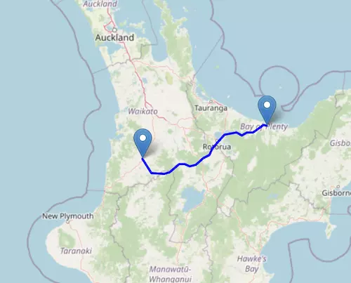 The SH 30 Motorway starts at Te Kuiti and ends at Whakatāne, passing through Rotorua and Kawerau.