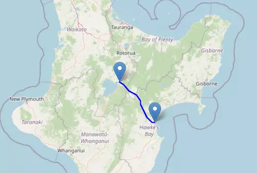 The SH 5 Motorway starts at Taupō and ends at Napier, passing through Rangitaiki, Te Haroto, Te Pōhue, and Eskdale.