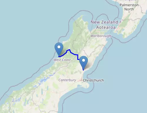 The SH 7 Motorway starts at Greymouth and ends at Waipara, passing through Reefton, Springs Junction, Lewis Pass, and Culverden.