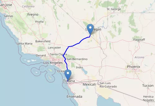 Interstate I-15 in California reaches from Primm, Nevada, to San Diego, California.