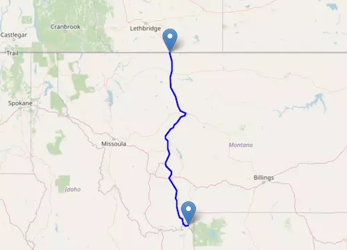 Interstate I-15 in Montana reaches from the border of Canada to Idaho.