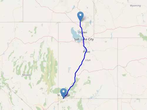 Interstate I-15 in Utah reaches from Montana to Nevada via Arizona, passing through Salt Lake City.