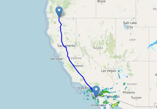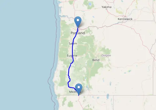 Interstate I-5 reaches from the border of Oregon to the border of Mexico.