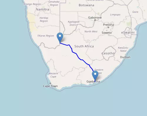 The National Route N14 starts at Springbok and ends at Pretoria, passing through Pofadder, Upington, Kuruman, and Vryburg.