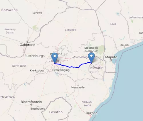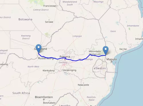 The National Route N4 starts at Skilpadshek and ends at Komatipoort, passing through Pretoria and Mbombela.