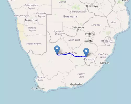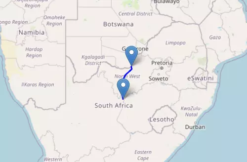 The National Route N8 starts at Groblershoop and ends at Maseru, passing through Kimberley and Bloemfontein.