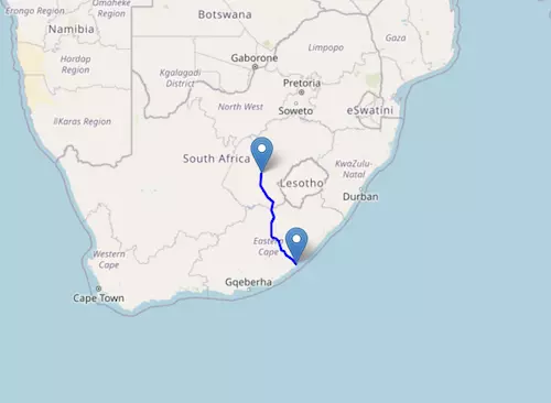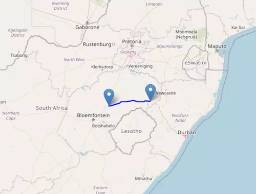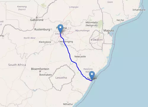 The National Route N3 starts at Johannesburg and ends at Durban, passing through Harrismith and Pietermaritzburg.