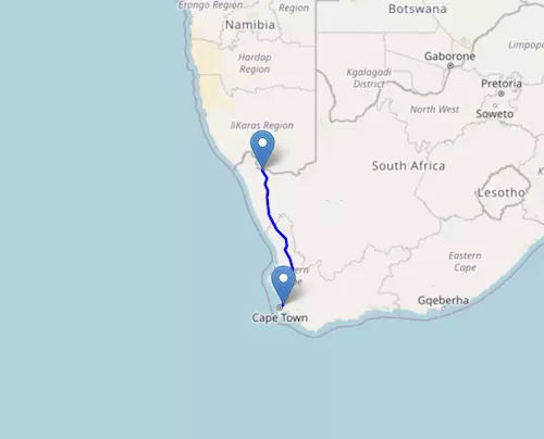 The National Route N7 starts at Vioolsdrif and ends at Cape Town, passing through Springbok, Kamieskroon, and Clanwilliam.